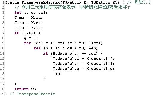 注意理解为什么转置算法中,以列从小到大来进行转置。实际上只需一个循环就能够完成转置而不需将列从小到大来处理,转置后的矩阵虽然是正确的但却乱掉了,以至于在各种处理中会增加复杂。(其实就本题而言,如果不以列从小到大处理将导致输出困难,输出的复杂度增加)
