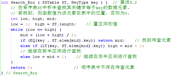 通过课本中的性能分析部分,不难发现折半查找的时间复杂度为O(log2n),这是一种非常高效的查找方法。