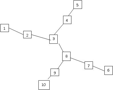例如,如下图所示的树形图,砍掉顶点3或者顶点8,分割开的各部分满足条件。
