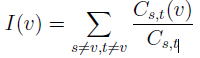 我们可以用对应结点之间的最短路长度来衡量两个人s 和t 之间的关系密切程度,注意到最短路径上的其他结点为s 和t 的联系提供了某种便利,即这些结点对于s 和t 之间的联系有一定的重要程度。我们可以通过统计经过一个结点v 的最短路径的数目来衡量该结点在社交网络中的重要程度。考虑到两个结点A 和B 之间可能会有多条最短路径。我们修改重要程度的定义如下:令Cs,t表示从s到t的不同的最短路的数目,Cs,t(v)表示经过v从s到t的最短路的数目;则定义