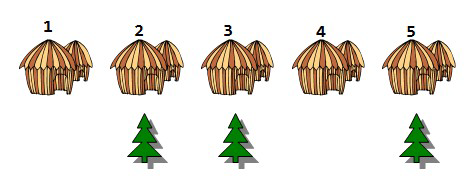 H村里有n幢房屋,这些屋子的排列顺序很有特点,在一条直线上。于是方便起见,我们给它们标上1~n。树就种在房子前面的空地上。