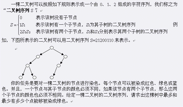输入文件仅有一行,不超过10000个字符,表示一个二叉树序列。