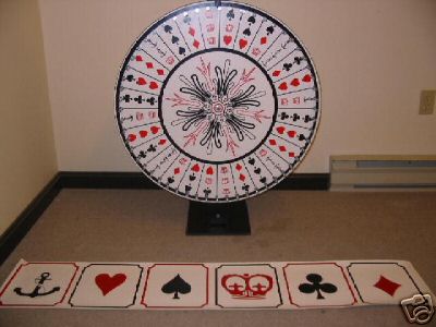 The design of the wheel can be seen in the illustration. It has 28 possible stopping positions, only 14 different combinations of symbols, each of which appears twice. The 14 combinations include: 6 that contain three identical symbols; 6 that contain two identical symbols, and 2 that contain three distinct symbols. The patterns are designed so that each symbol appears once, twice, and three times in an equal number of wheel positions.