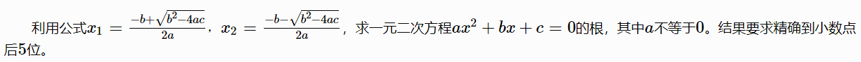 输入一行,包含三个浮点数a,b,c(它们之间以一个空格分开),分别表示方程ax