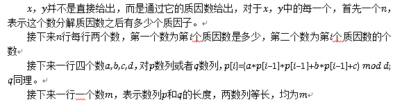 每个质因子小于等于100,质因子个数小于等于50,可以分解出每个质因子个数小于等于50,m≤5000,a,b,c,d≤1000