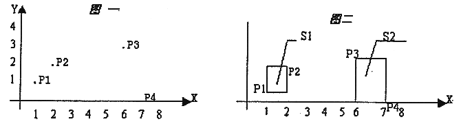 这些点可以用k个矩形(1<=k<=4)全部覆盖,矩形的边平行于坐标轴。当k=2时,可用如图二的两个矩形s1,s2覆盖,s1,s2面积和为4。问题是当n个点坐标和k给出后,怎样才能使得覆盖所有点的k个矩形的面积之和为最小呢。约定:覆盖一个点的矩形面积为0;覆盖平行于坐标轴直线上点的矩形面积也为0。各个矩形必须完全分开(边线与顶点也都不能重合)。