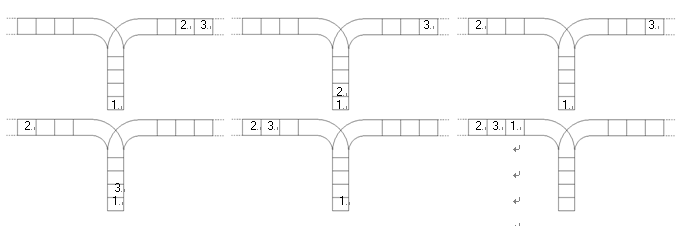 2. 将一个数,从栈的头端移到输出序列的尾端(对应数据结构栈的pop操作)使用这两种操作,由一个操作数序列就可以得到一系列的输出序列,下图所示为由1 2 3生成序列2 3 1的过程。(原始状态如上图所示)