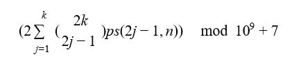 Sheath let ps(k,n) be the sum of the power of the first n positive integers. and the number of k -combinations of a set with n elements is recorded as by Sheath. He'd like to find the double of the sum of the product of