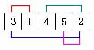 例如,数组<3,1,4,5,2>的“逆序对”有<3,1>,<3,2>,<4,2>,<5,2>,共4个(如图所示)。