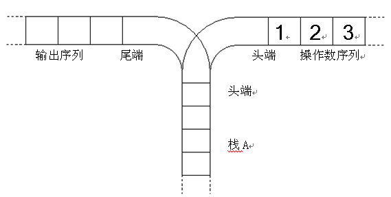 宁宁考虑的是这样一个问题:一个操作数序列,从1,2,一直到n(图示为1到3的情况),栈A的深度大于n。