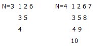 有这样一种特殊的N阶的三角形,当N等于3和4时,矩阵如下: